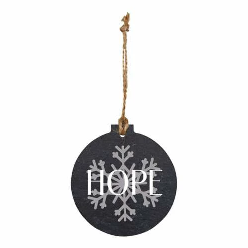 This inspirational slate ornament adds traditional, rustic charm to your home this Christmas season. Hang on a tree, around the house, or attach to a gift. Includes twine for easy hanging.