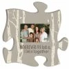 This creative and fun wall dΓ©cor replicates the look and feel of an actual puzzle. Pieces are filled with inspirational sentiments allowing you to tell your story using plaques and photo frames. Each piece is connectable and equipped with pocket mounts for easy wall hanging. Holds 4×6 photo.