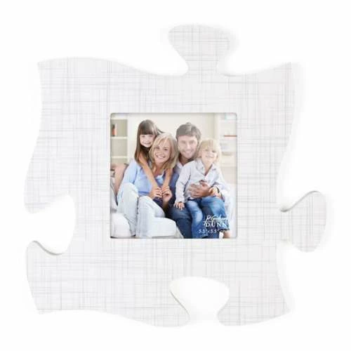 This creative and fun wall dΓ©cor replicates the look and feel of an actual puzzle. This piece allows you to tell your story with a photo frame. Includes a pocket mount for easy hanging and is shaped to connect with other puzzle pieces.
